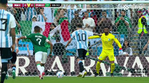 比赛第53分钟,沙特阿拉伯队前场进攻,达瓦萨里连续摆脱三名防守队员后打出一记世界波!沙特阿拉伯队2-1反超比分!