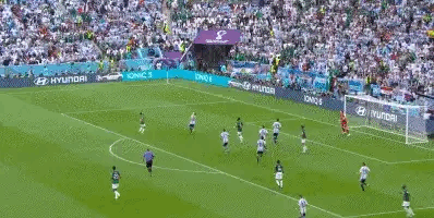 第22分钟,梅西在中圈弧顶位置接到传球获得单刀机会,他面对门将低射破门但越位在先;第27分钟,劳塔罗·马丁内斯挑射破门,但是又一次越位无效;第34分钟,梅西送出直塞,劳塔罗·马丁内斯进球,但再次越位;伤停补时第3分钟,沙特队长萨尔曼·法拉吉受伤无法坚持,被替换下场。半场结束,虽然阿根廷攻势凶猛,但仍只是1-0领先沙特阿拉伯。