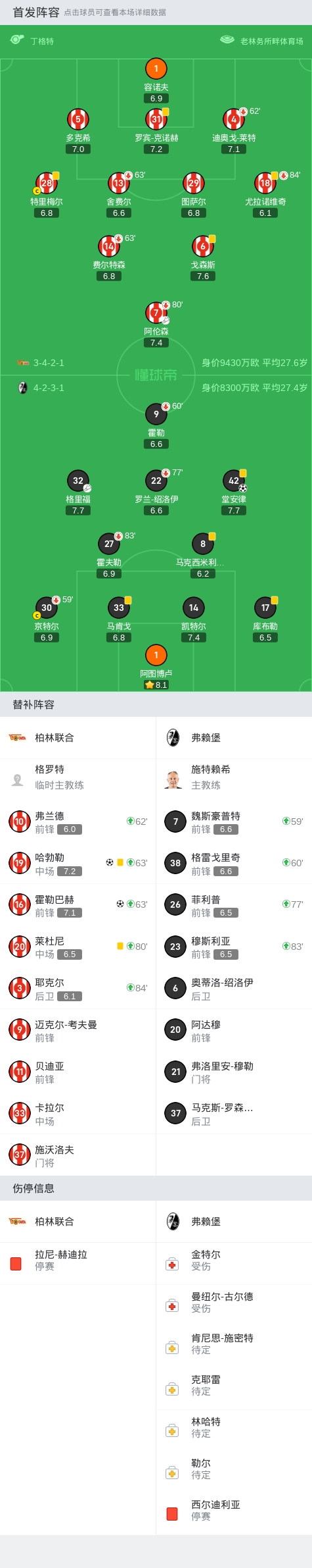 北京时间5月18日德国足球顶级联赛联赛第34轮,柏林联合主场对阵弗赖堡。