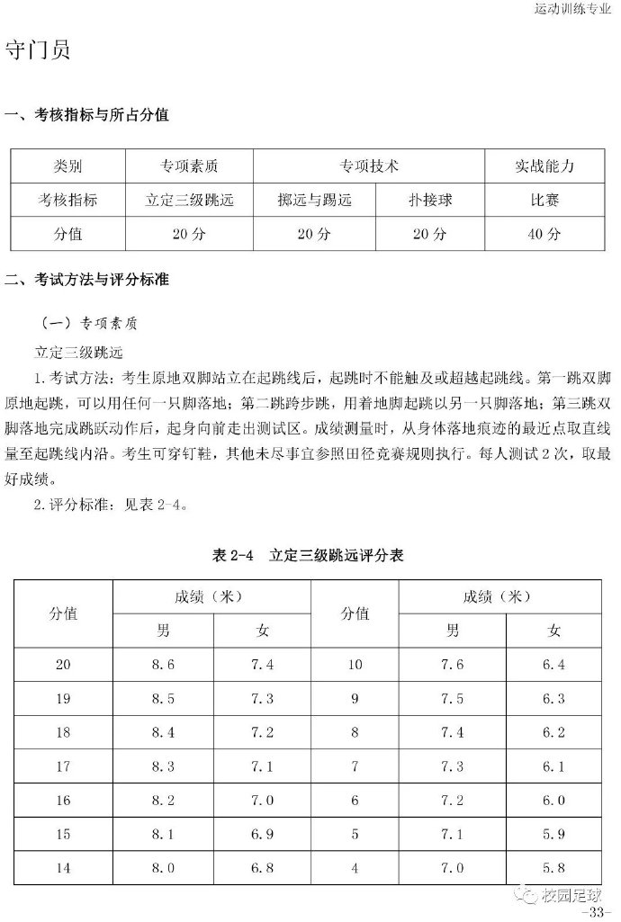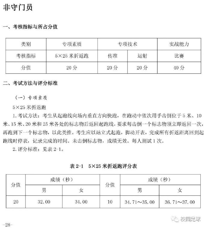 4.守门员增加出球前和出球后的位置规定,扑接球由原来的10个改成6个,具体考试方法也有变动。