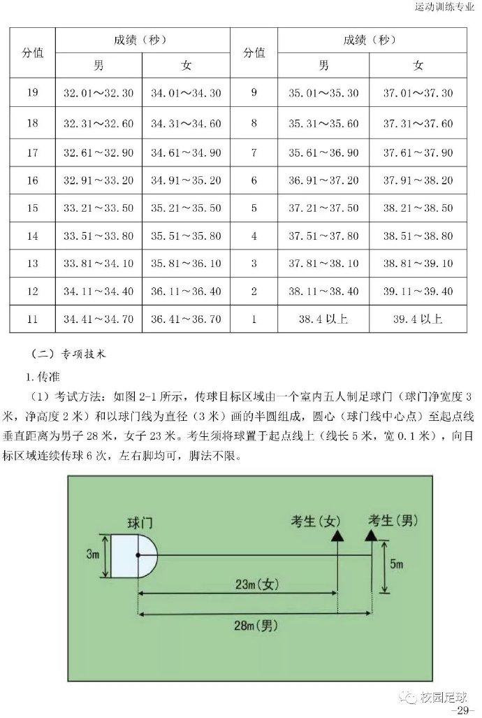 2020年体育单招足球专项考试具体考试方法及评分标准如下: