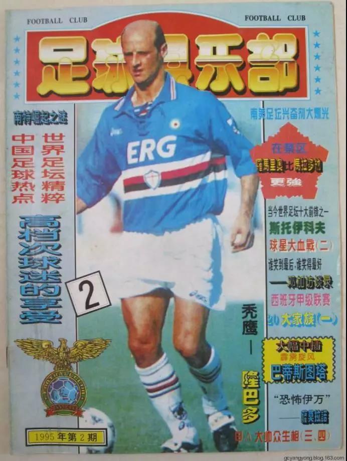 从1993年到2019年,由百花洲文艺出版社出版的《足球俱乐部》(初期售价2.5元),为中国几代球迷记录着国内和国际足球的风云变幻。在那个信息奇缺、壁垒高筑的年代,《足球俱乐部》以热爱之名,成为了无数青春岁月的陪伴。球星卡、大幅中插以及类似对联式的封面排版设计,装点着太多无处安放的足球之梦。