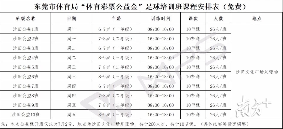 据了解,培训名额共260人,可在村(社区)或到沙田镇政府宣传教育文体局二楼206室现场报名,不允许重复报名。当报名人数超过260人,以抽签形式确定选训名单。具体课程安排由约翰足球俱乐部提前通知家长培训具体内容。