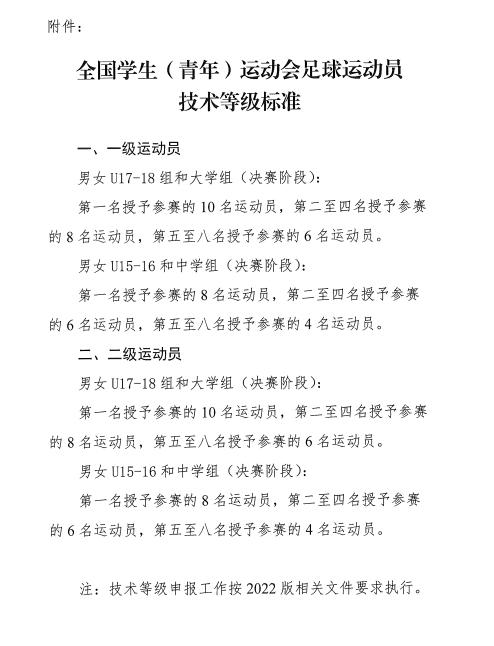足球 二级运动员是什么?二级运动员初中、高中阶段学生凡符合下列条件之一者,可申请授予二级运动员称号。1.世界中学生运动会、世界中学生足球锦标赛:第一至四名授予参赛的9名运动...