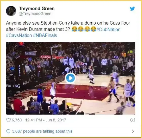 在2017年总决赛第三场中,库里的一个不正常的下蹲动作就让观众把视线放在了他的臀部。