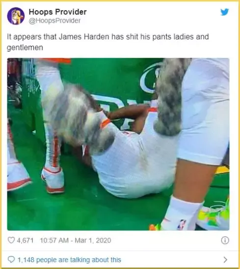 前不久,哈登在和凯尔特人的比赛中狂砍41分,但引起热议的是他被染黄的球裤,网友都猜测他在比赛中被打出了屎。