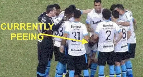 在足球比赛中,球员下场次数受到严格控制,这意味着当教练没有领悟到你紧急的求助时,你只能在场上找机会排泄。