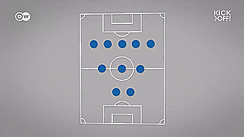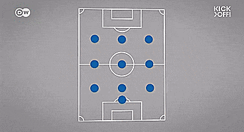 有时候他们内切很深,在持球时排出2-3-5阵型,在中场创造出很多三角形,以踢出他们想要的tiki-taka 。