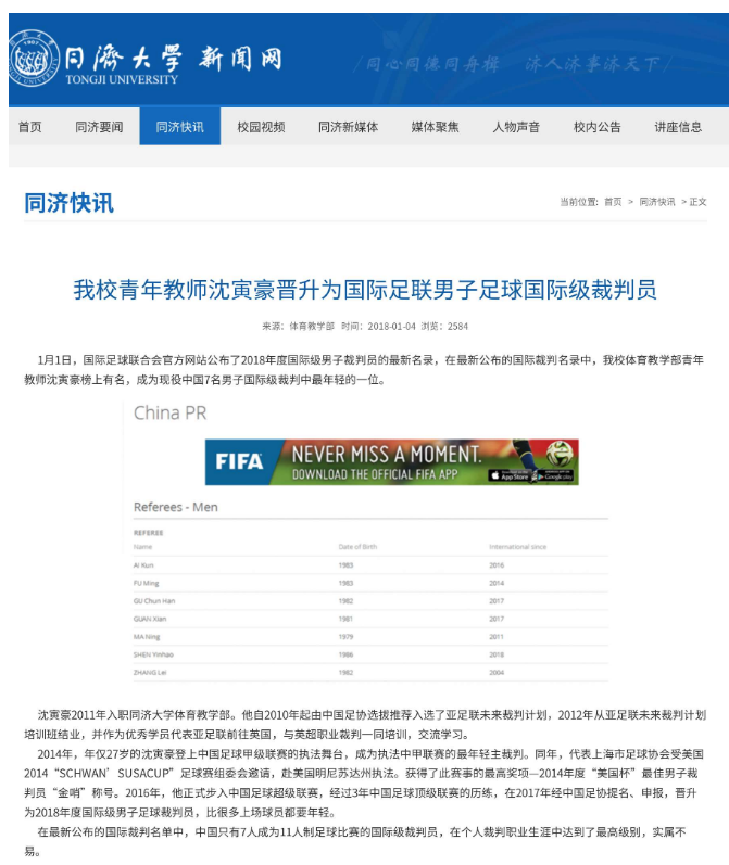 京鲁之战首回合,中国足协安排的是国际级裁判沈寅豪。公开资料显示,今年 34 岁的沈寅豪毕业于上海体育学院,2011年入职同济大学体育教学部,目前任同济大学国际足球学院副院长。2018 年,沈寅豪在自己 32 岁那年晋升为国际级裁判,是国内最年轻的男足 11 人制足球比赛的国际级裁判。足协派出这样一位年轻有为的精英裁判执法,意图很明显,那就是力求比赛的公平公正。