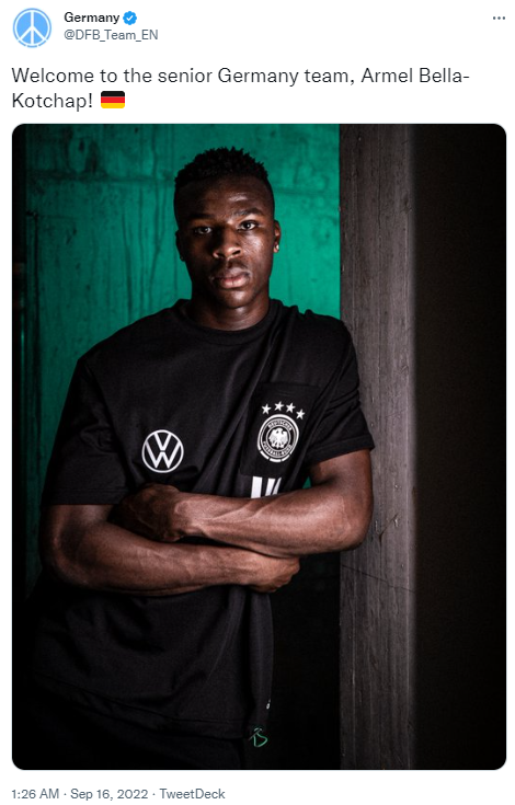 在中后卫位置上,德国队主帅弗里克没有选择33岁的多特蒙德后卫胡梅尔斯,而是选择了20岁的南安普顿后卫贝拉-科沙。贝拉·科沙身高达1米90,在今年夏天从波鸿转会南安普顿,转会费为1000万欧元,本赛季至今代表球队在英超首发出场10次,已是南安普顿的主力中后卫。在今年9月,贝拉·科沙首次入选德国国家队,德国队3-3战平英格兰的欧国联比赛中,他在终场前替补出场,迎来了个人在德国队的首秀。