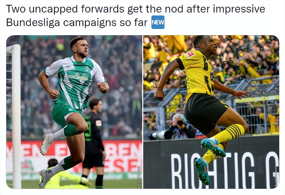 在锋线上,17岁的穆科科与29岁的菲尔克鲁格均被德国队主帅弗里克征召,两人都是首次入选德国国家队。在本赛季德甲,出场13次的穆科科已为多特蒙德打进6球并有3次助攻,状态相当出色。高中锋菲尔克鲁格同样状态正佳,本赛季德甲出场13次的他,已为云达不莱梅打进10球并有2次助攻。
