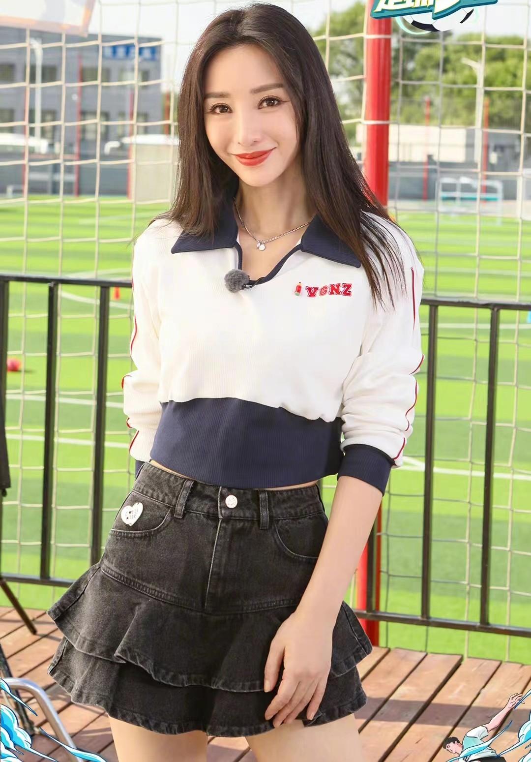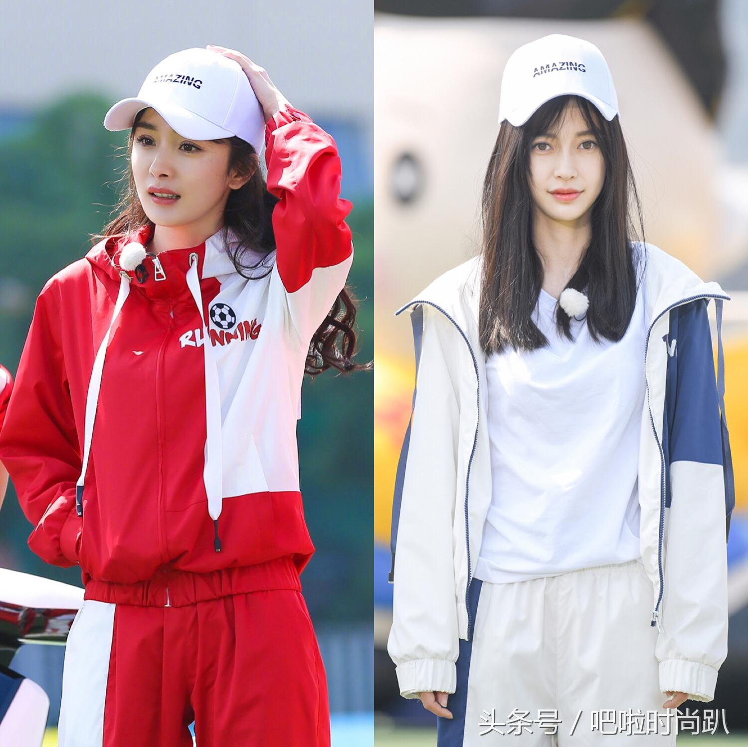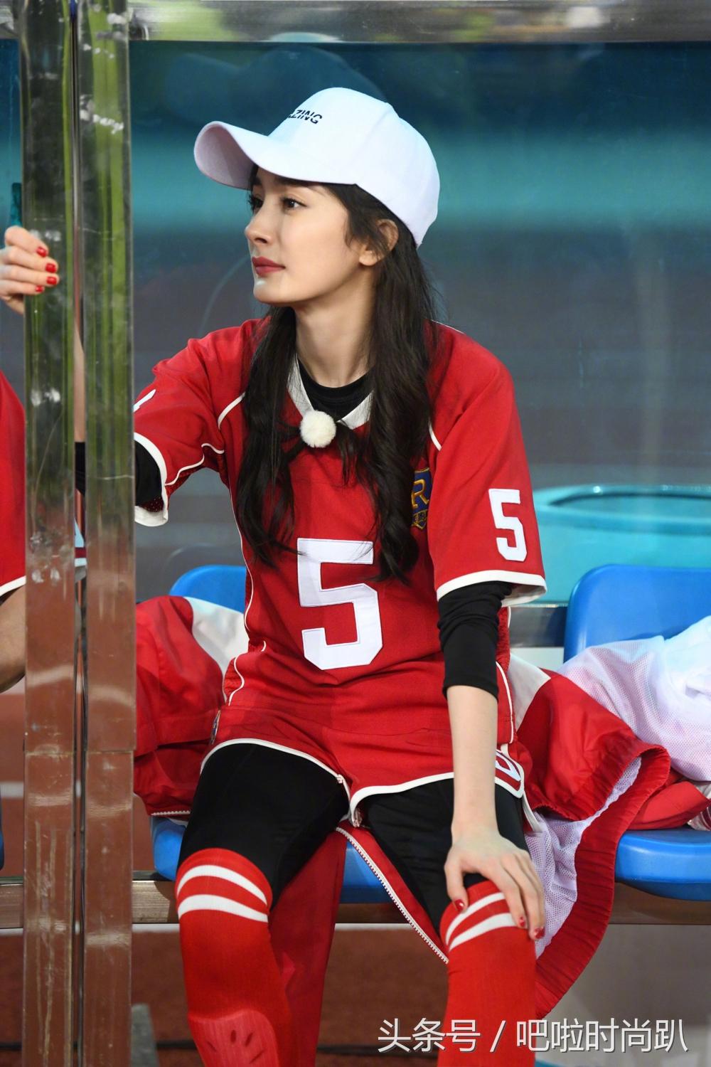 但是baby还是都完美的hold住了,可能是因为参加节目要真的踢球所以baby和杨幂都在足球装里面搭配了黑色的打底,更适合运动,但是也少了一些美感。