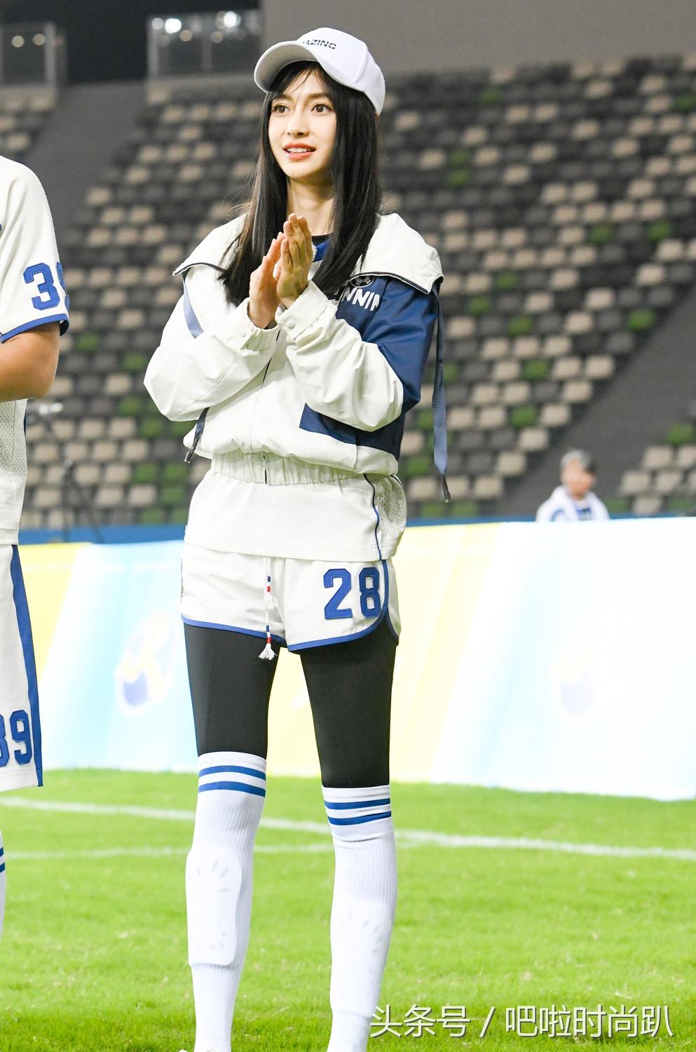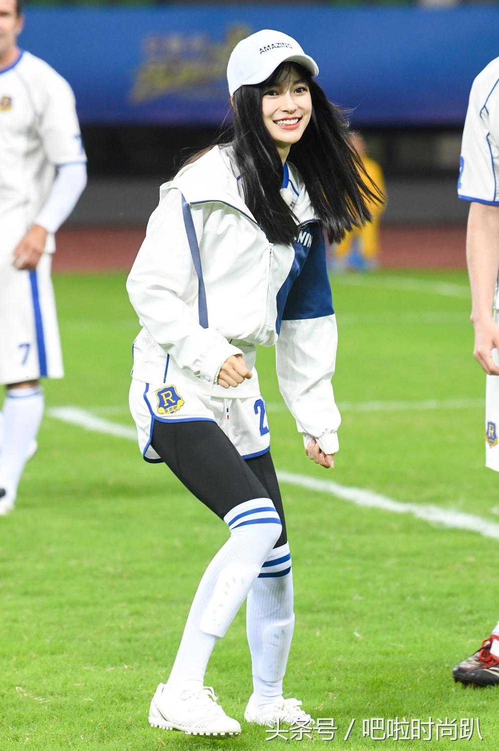 关晓彤的美腿和颜值都没得说,这个足球宝贝也太可爱了吧!真正现身绿茵场上时关晓彤还搭配了黑色运动袜和运动鞋