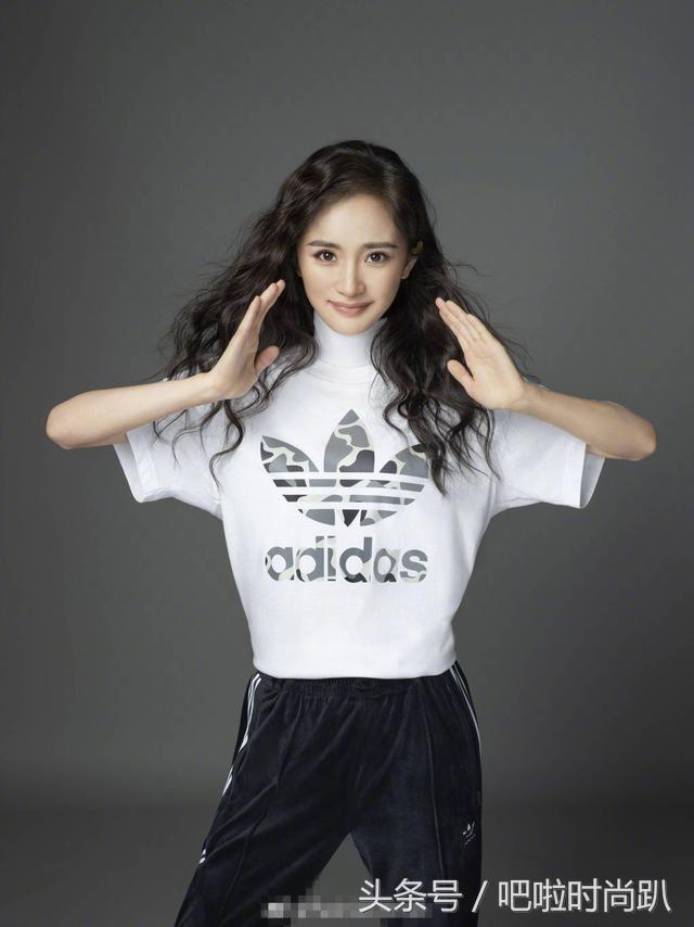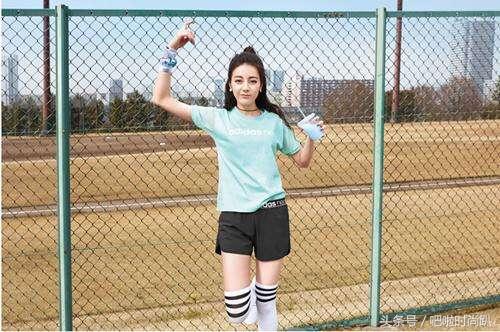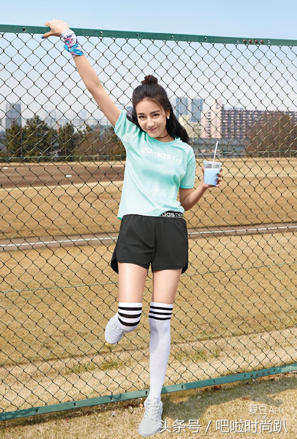 热巴之前为Adidas neo拍广告时也选了一身足球感的套装,但是热巴这套造型弱化了足球的感觉,更加清新运动。