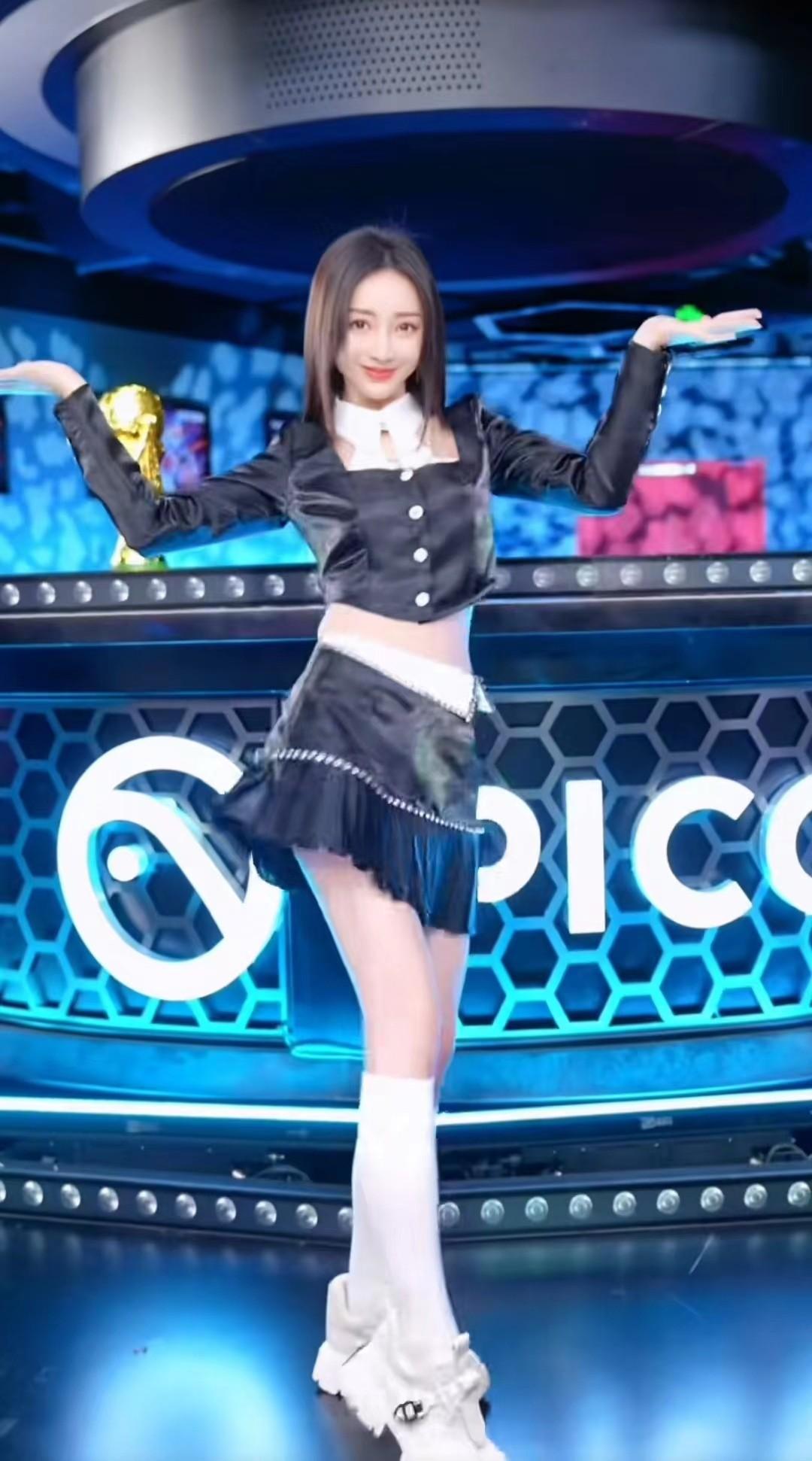 柳岩上身穿着黑色镂空皮质短款上衣,下身穿着黑色皮质短裙,纤细的腰身随着扭动的舞姿暴露在外面,再加上一双白皙又修长的美腿,简直美到让人移不开眼球。