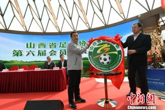 山西省体育局局长苏亚君和省体育局副局长赵晓春为山西省足球协会会徽揭牌。 武俊杰 摄