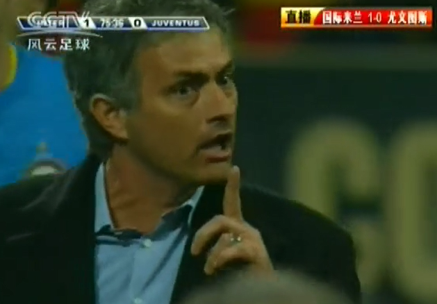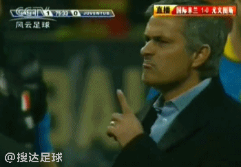 在看到弟子进球后,穆里尼奥一脸狂傲,做出了闭嘴的手势。