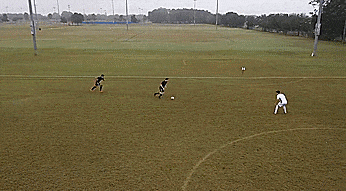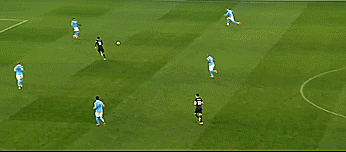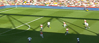 但这个时候队友也已插上而且位置更好,这个时候不要自私,只顾自己射门。