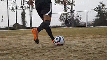 让我们的一侧朝向球,然后把我们的脚放下,将球随着脚提起来,当球到我们的脚上时,我们弯曲我们的腿。
