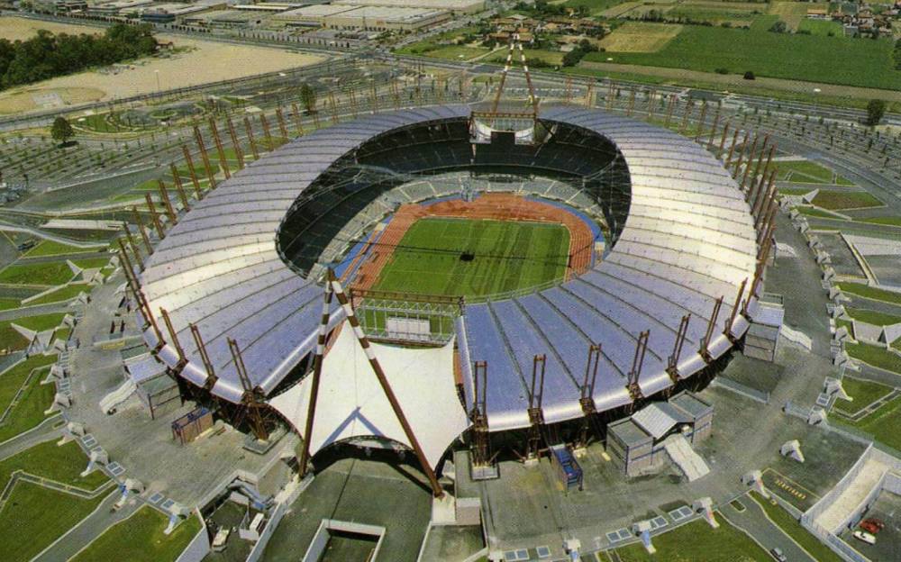 这座球场的前身是阿尔卑球场,是一座专门为1990年意大利世界杯建造的球场,总耗资高达1800亿里拉,由著名建筑胡特尔设计的,可容纳69041名观众。当年,阿涅利家族利用自己的影响力将巴西队的首场比赛安排在这座球场进行。而在此之后,尤文和都灵都把这座球场作为自己的主场,而阿尔卑球场的所有权归都灵市政府。