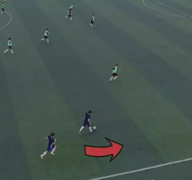 从边路插上,为持球队友提供一个传球的线路。接到皮球后,可以选择和队友寻求配合,也可以选择自信地杀入对方腹地。