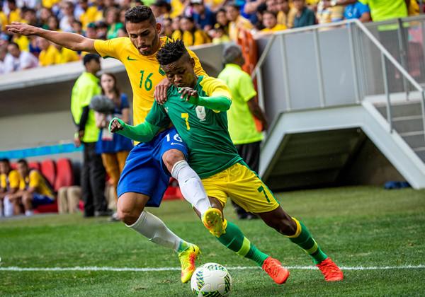 北京时间今天凌晨3点,2016年里约奥运会男子足球小组赛A组的一场比赛在东道主巴西和南非之间展开,上半场比赛一开始,巴西队发起猛攻,内马尔频繁在大禁区线附近觅得射门良机,可惜都被南非队守门员神勇化解。南非队的防守收缩坚决,并没有留给巴西队太好的机会。