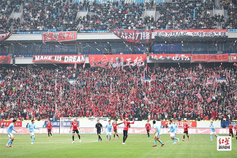 12月23日,新建成不久的成都凤凰山专业足球场迎来自己的中超首秀,开票日当天,线上放票2万张,4小时便被抢空,最终3万多名球迷涌入,“雄起”声震破天际。