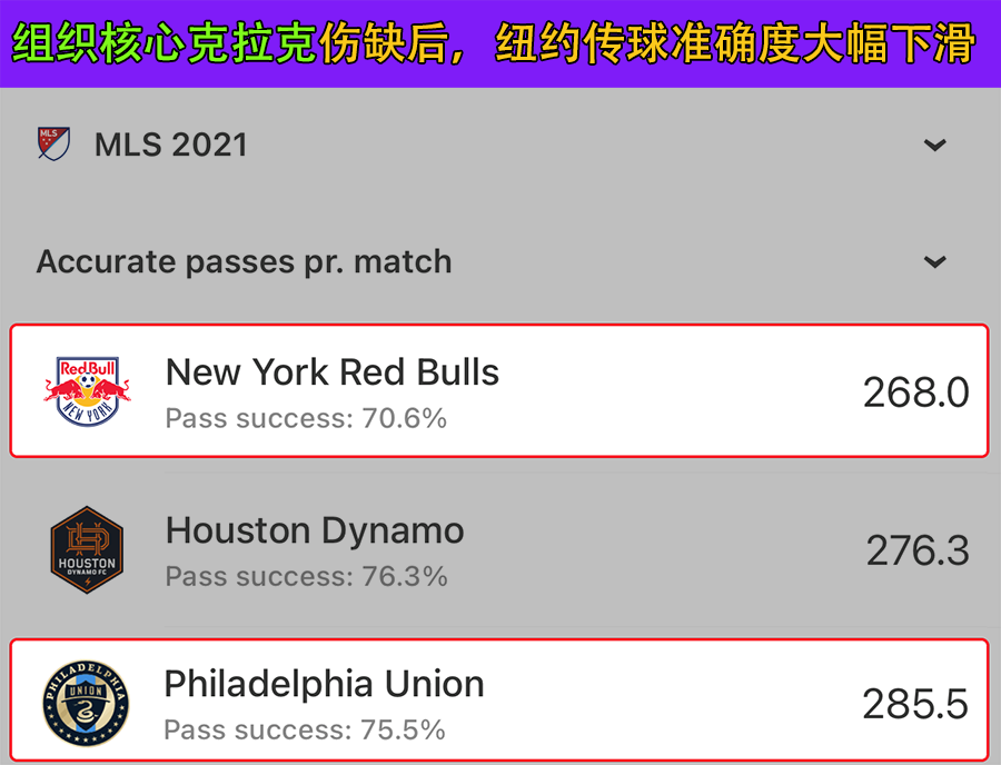 长传冲吊,也有高下之分,费城联合在很多项数据上,比纽约红牛更出色。