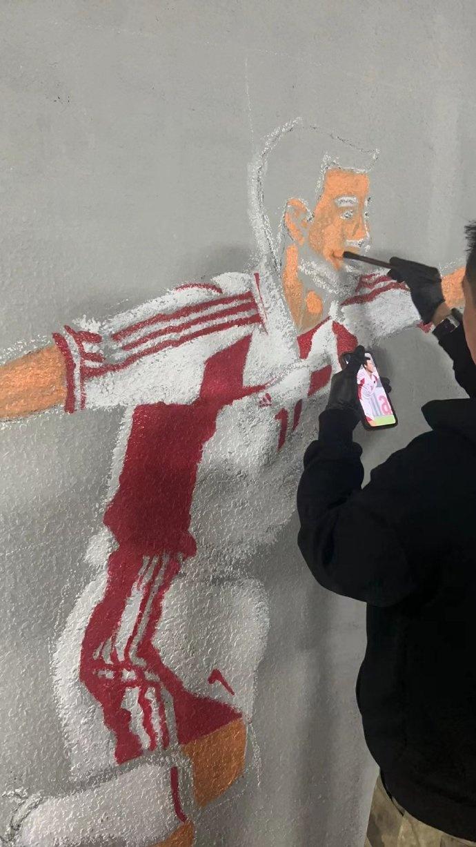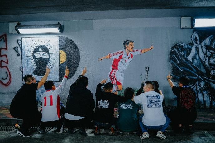 博主“天津力量TianjinPower”透露,泰达南看台组织津門虎翼和津門聯合縱隊TUB在李公楼地道涂鸦墙制作作品,致敬于根伟,而画像内容正是于根伟01年世预赛对阿曼破门的庆祝动作,这粒进球帮助中国队打入世界杯。
