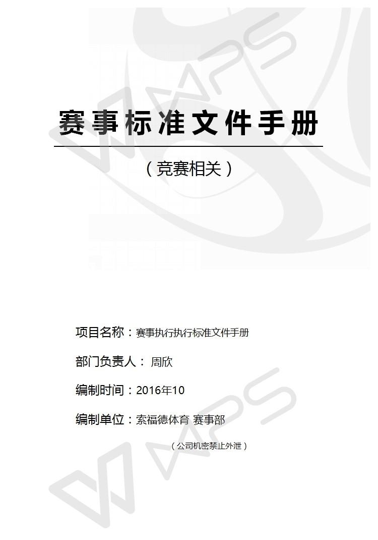 同时赛事的运营也必须具有相当的专业度,好的赛事运营我见过,差的我见过更多。尤其是刚才说的跨区域或全国性赛事的运营,赛事更是需要全套完善的标准体系。公司相关的赛事体系和标准没法各大家细说,就用两个目录来展示一下相关内容: