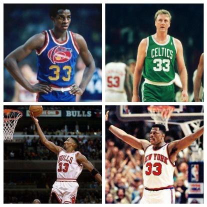 33这个数字,看似很冷门,但是你只要仔细回想,一个个NBA远古大神的模样就会浮现在你的脑海。大鸟伯德、尤因、皮蓬、大卫·汤普森……随便一位挑出来,都是当年全联盟炙手可热的球星。