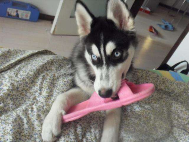 主人的拖鞋可以说是很多狗狗最喜欢的玩具了,因为那上面有主人的味道,狗狗闻着很亲切和熟悉,不过狗狗很喜欢用嘴啃咬,咬着咬着,有时就容易被它给咬坏,如果不想经常换拖鞋,主人最好把鞋子放鞋柜里藏好,旧的拖鞋也别扔,干脆送给狗狗,让它继续玩。