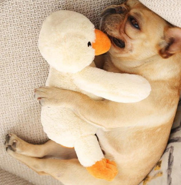 狗狗和小孩子一样,也很喜欢毛绒玩偶,这可能是所有哺乳动物的共性,因为它毛绒绒的,让小孩子和狗狗都感到亲切温暖。刚到家的小狗,经常要抱着玩偶睡觉,看着就觉得十分可爱。不过狗狗喜欢撕咬,长大后咬合力更强,很容易把玩偶咬坏,可以挑选些耐咬一点的玩偶或给狗狗更换别的玩具。