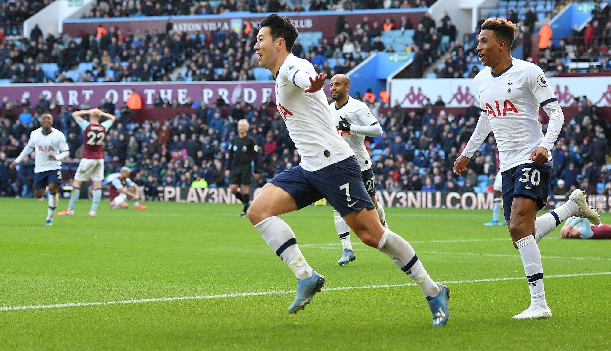 进入下半场伤停补时阶段,比分为2-2,在补时的最后一分钟,抓住对方球员的失误,孙兴慜带球冲入禁区后推远角得手,绝杀了阿斯顿维拉。