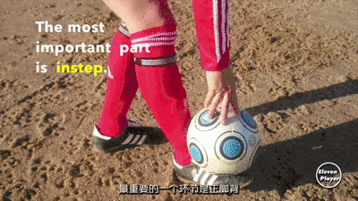 可以通过用双手把球砸向正脚背去感受那种正脚背(鞋正面系鞋带的部位)触球的感觉。