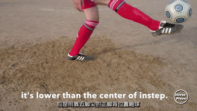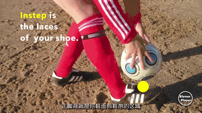 首先我们要明确在颠球时我们要使用脚背的哪一个部位去触球。