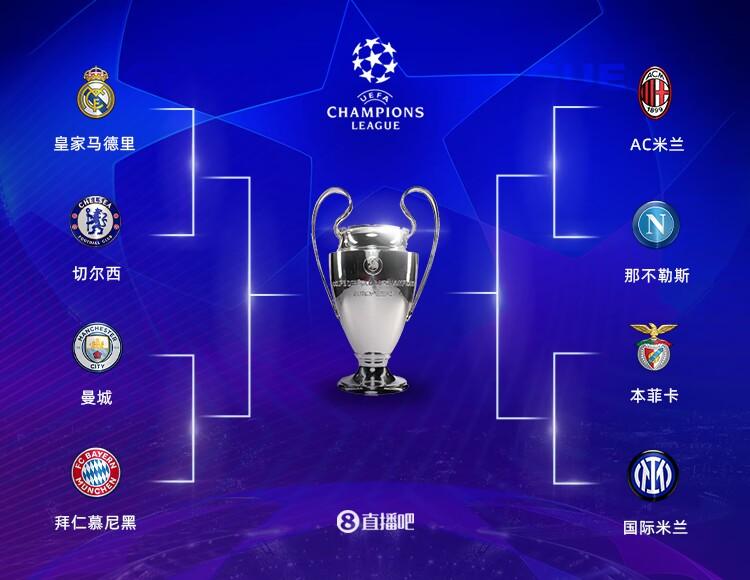 直播吧3月17日讯 欧冠8强抽签已经结束,拜仁与曼城强强碰撞,皇马与切尔西狭路相逢,以下为4组对决具体赛程: