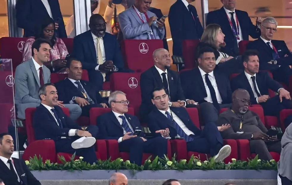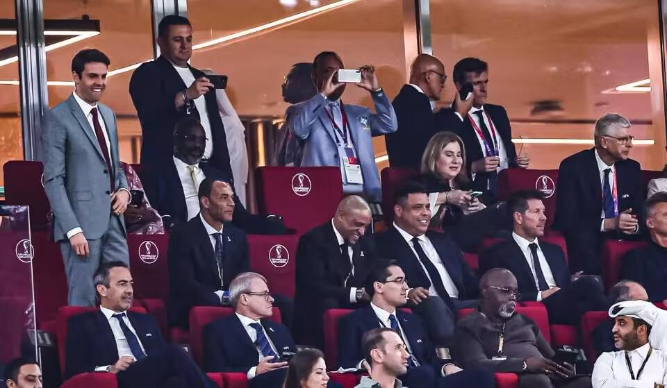 值得一提的是,有多位足坛名宿也来到了现场,观看了本场比赛。974球场的贵宾席里星光闪耀,大罗、卡洛斯、卡福、西蒙尼、温格、光头科里纳全来了,最大牌的客人坐在后排正中间,他便是现利比里亚总统、前足坛巨星乔治-维阿。这样的巨星嘉宾阵容,令前巴西巨星卡卡也只能靠边站,他站起身微笑盈盈地看着大家。
