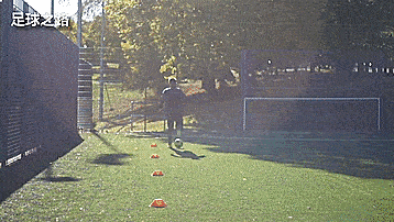 第二个训练是横向标志盘带球,我们之前已经提到,边后卫也有进攻职责,所以必须要具备犀利的控球能力。