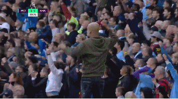 曼城主帅瓜迪奥拉振臂欢呼!对瓜迪奥拉来说,足球生涯14年的执教,也是首次执教哈兰德这样的巨无霸中锋。伊蒂哈德球场的曼城球迷,再次近距离体验了一把超级中锋破门的震撼场景。