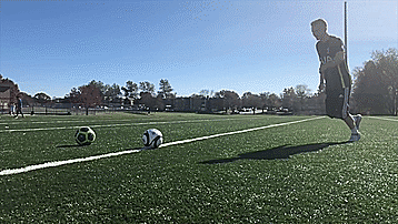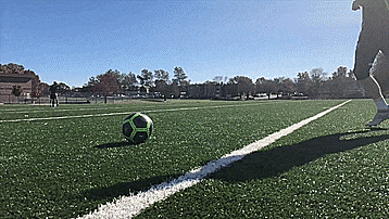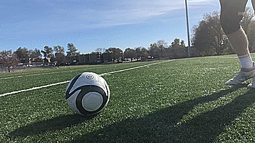 所以当我们射门的时候,助跑会更直一些,我们要击打球的正中下方,脚向上倾斜,用力将球踢出。