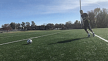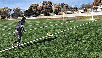 指节球的助跑会更直一点,因为我们要用脚部最硬的骨头击打球的中间。