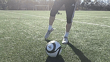 我们要把脚向外侧倾斜,这样就能暴露出最佳射门点,然后从球的中间穿过去。