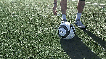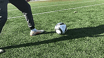 最后一个是两种技巧的组合,叫做大力弧线,有正脚背射门的力量,又比外脚背射门更准确,我们下面开始分解,首先脚尖向下,脚踝锁死,和弧线射门一样,有一个向内摆的随球动作。