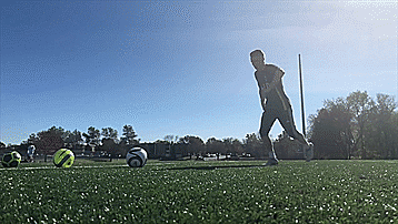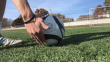 下一个技术是外脚背射门,这次我们用脚的外侧来产生弧线,所以这几乎和弧线球技术相似,如果我们是右脚球员,我们会踢球的右下侧,然后向上切。