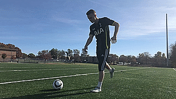 我们要把脚向上倾斜,这样我们可以从球的底部包裹着球到顶部,有助于增加旋转。