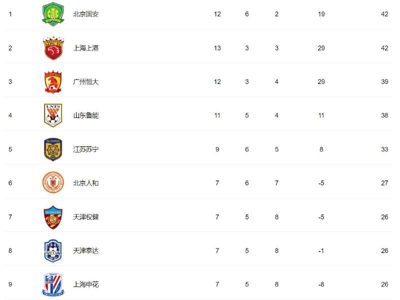 目前的积分榜上,恒大已经以39个积分领先鲁能1分,排在积分榜第三位,身前的国安和上港则都是同积42分。