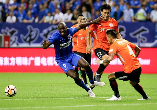 上海申花1-3北京人和,奋力拼抢的登巴巴无力回天。