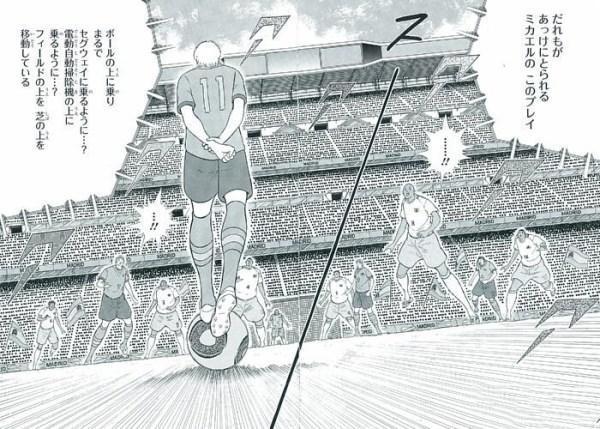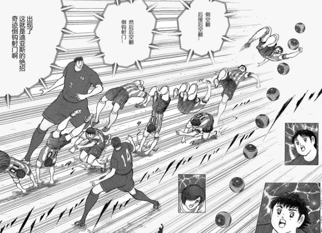 伴随着这些杀人球技而来的还有充满违规和杂耍的各种技战术。比如在漫画中各种杂耍式不讲道理的过人,看起来令人目瞪口呆。
