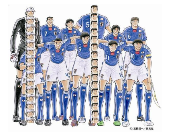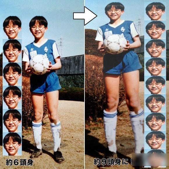 甚至有网友针对足球小将的身高比例,将现实中的人改成大长腿,于是有了这种诡异的既视感!